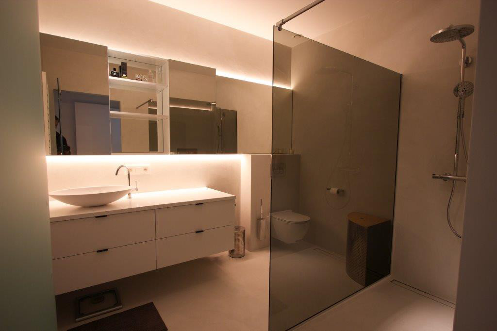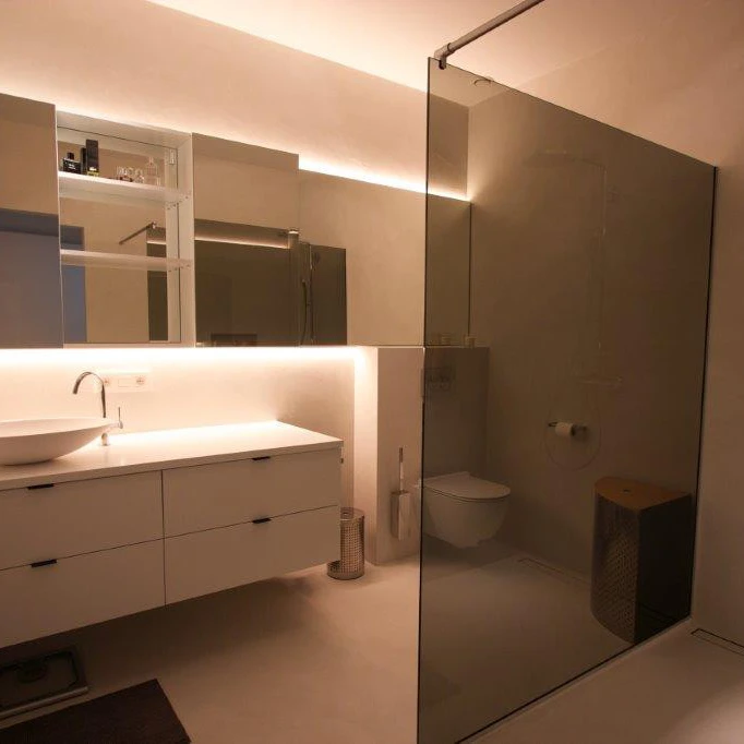 Microtopping kan aangebracht worden op nieuwe of bestaande douchewanden, badkamerwanden en vloeren.